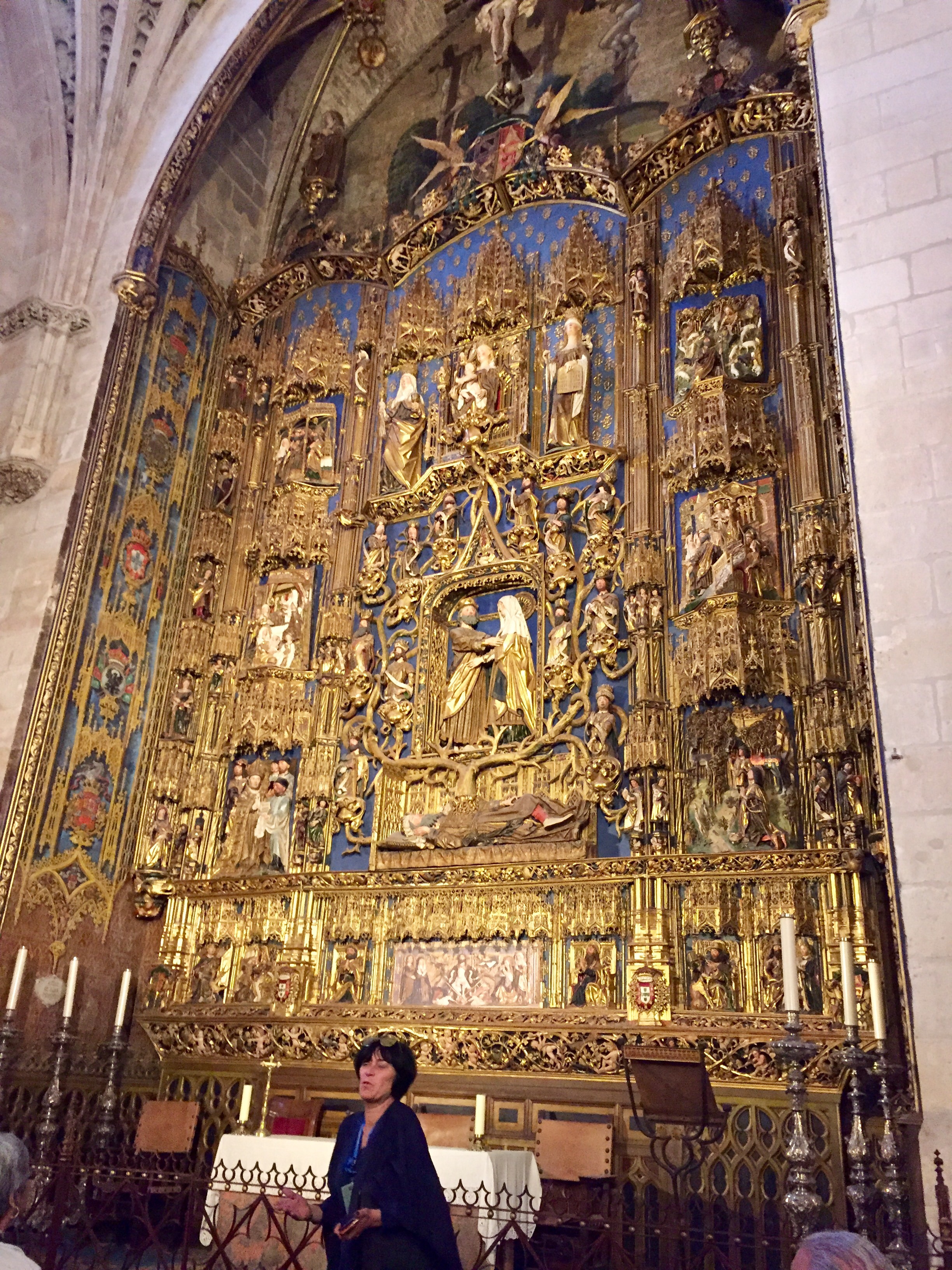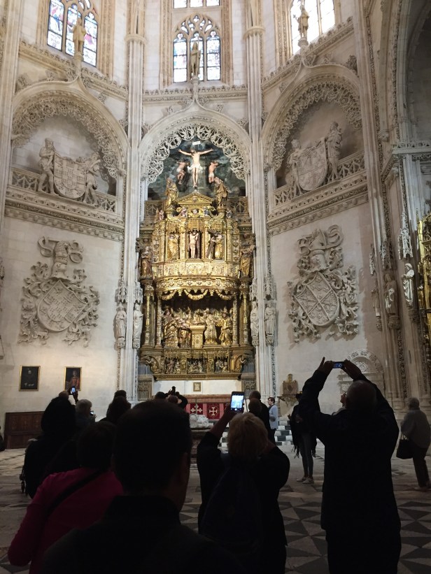 Yesterday we traveled by bus from Fatima, Portugal north through most of Spain. We stopped in a town called Salamanca for lunch and a quick tour. It really was just to break up the day and although they have a beautiful and very historic university there we just kind of cruised through it. Then we got back on the bus and got on the road again. We spent the night in Burgos, Spain. They have an amazing cathedral and I will include pictures. These Spaniards put the Italians to shame when it comes to decorating cathedrals. The gold and the carvings are too much to even describe.