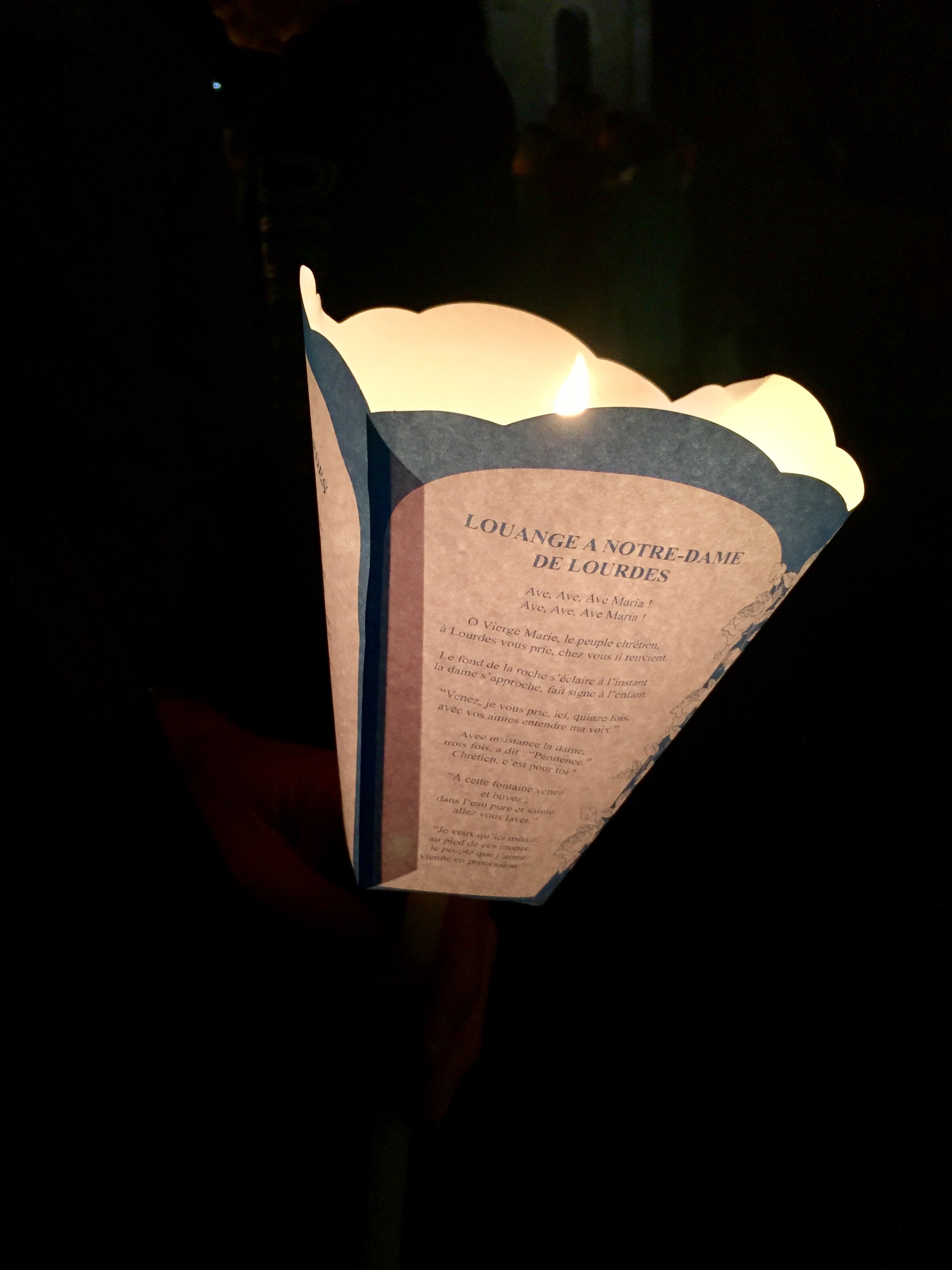 Like in Fatima, no one pushed or crowded one another. Maybe it was because our heart were in a higher spiritual place or maybe it was because we were all holding lit candles and could easily sent each other on fire. Some people opted for the candles that have a paper shade their candle instead of the plastic. I saw at least five of them catch on fire. For some reason rather than dropping the burning candle with the flaming paper shade and then stepping on it, they all waived it around or blew on them which only seem to make it worse. It was a little intimidating. But the crowd was gentle and quiet and we all just shuffled along. People sang and prayed in languages that I couldn’t even begin to guess what they were. There were flags from many countries, families, church groups, nuns and priests of every kind and even groups of teenagers. But the ones that broke my heart were the ones carrying their children. Even from a few feet away I could see from their mothers expression that they were hoping for a miracle for their child.