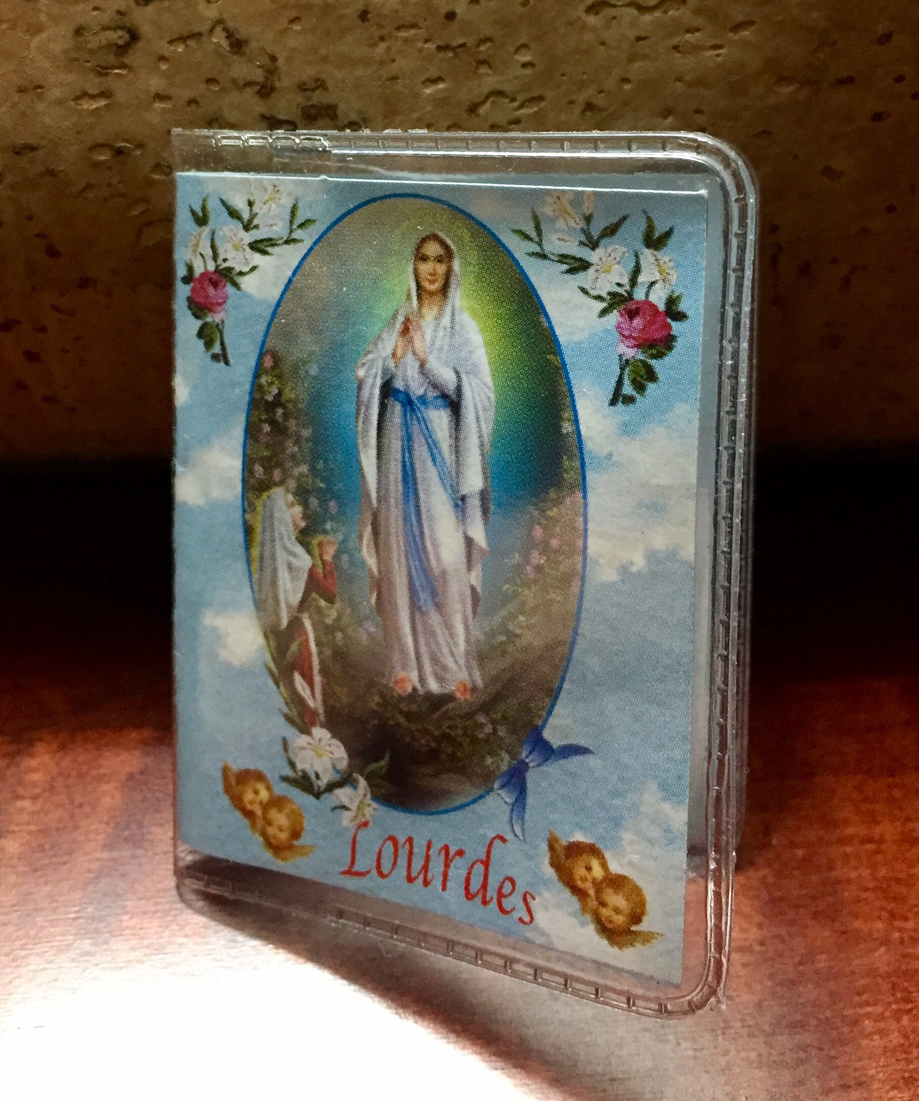 Two days later we arrive at Lourdes. We spend 3 very busy days in Lourdes, touring religious sites and even taking the Lourdes Bath. (see previous blogs). During those days there was a lot of going to Mass. When the group turned the corner toward the Chapel, I made a quick dodge behind a car and took off on my own. Today it would be all shopping. I strolled through shop after shop and finally found a jewelry shop that called my name. I purchased a pin shaped like a small silver sun. In the center of the sun was a round piece of Amber. I knew it was mine and when the smartly dressed French woman approached me I pointed to it in the case. I put it on my credit card which turned out to be a little complicated with no common language but we got it done. Just as I turned to leave, the French woman held up a finger for me to wait. Darn, was there a problem with my credit card? She spoke to a young girl in French and the girl disappeared into the back. She came out and handed my saleslady something. She motioned for me to put my hand out. I did. She placed a tiny Our Lady of Lourdes medal in my hand and closed my hand around it. She smiled. I thanked her.
