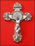 A few days in Paris and it was time to fly home. I boarded the plane alone. I want seated with the rest since I had joined the group after the tickets were purchased. A woman behind me asked for the time and we started talking.(see older posts) She had just finished volunteering at Fatima and was on her way home. She had a gentle was about her and our conversation flowed easily. When she stood up to let another passenger get to his seat, I got to see who I had been talking to. She was dressed in dark clothes and wore two distinctive necklaces. One was a large broach painted with the Blessed Mother and the other was a cross that I was immediately taken with. She told me it a St Benedict Cross and very special. She said it had many blessings upon it. I couldn’t stop looking.